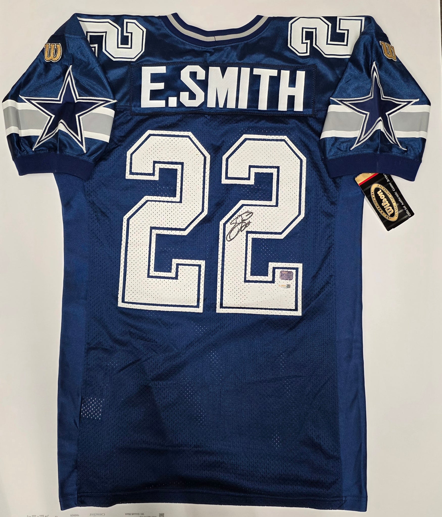 Emmitt Smith "Dallas Cowboys " Autographed Wilson Dark Blue Jersey Size 44. Prova & JSA