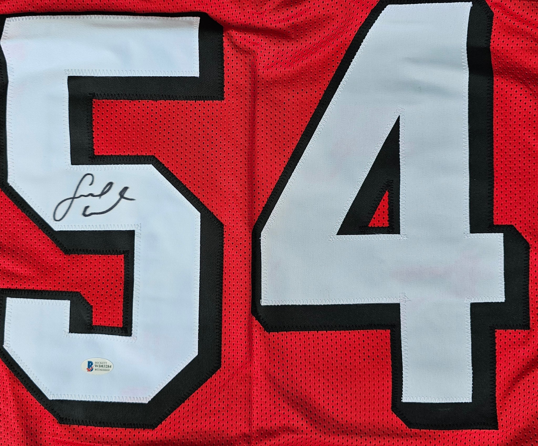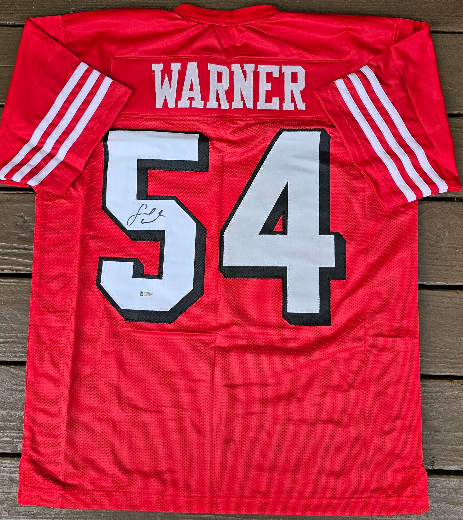 Fred Warner "San Francisco 49ers" Autographed Red Throwback Custom Jersey Size XL. Beckett Witness
